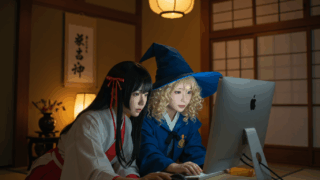 (場面:博麗神社、霊夢の部屋。畳の上にはノートパソコンが置かれ、画面には画像生成AIのインターフェースが映っている)「ふっふっふ……魔理沙、見て見て! 今回は“未来都市”を作ってみたのよ!」「おー、またすごそうなもん出してるな。どれどれ……...