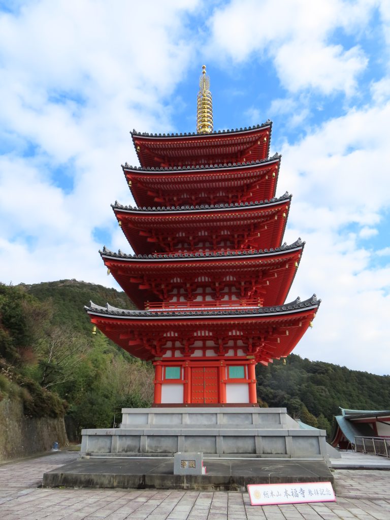 「おお、近くで見ると迫力あるな。五重塔自体は平成6年(1994年)に建立されたみたいだな。高さは33.6mで、西日本最大級の高さらしいぞ。」