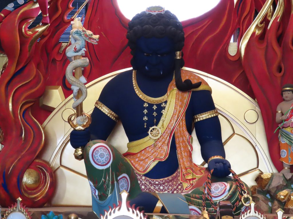 (二人は善法堂へと入っていく。入ると正面に佇むのは不動明王大仏である。)