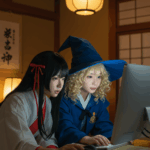 二人は笑いながら、新年の決意を新たにし、静かな時間を焚き火の前で過ごしていた。参拝客たちが再び訪れる前の、短いけれど心温まるひとときだった。